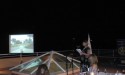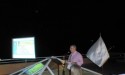 Va corriendo una brisita agradable a medida que vamos y venimos del buffet. De pronto, se apagan las luces y la pantalla de proyección se ilumina. Aparece la rueda rotaria y la música invita a recolarse para poder presenciar el recién iniciado acto de cambio de Presidente.
