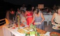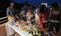 Subimos finalmente a la kilométrica y panorámica terraza donde Toni y María han instalado las mesas, el buffet y las bebidas. Todo tiene una pinta magnífica: fritet, porcelleta, aubergínies farcides, carabací farcit, robiolets, salmón. Tot ben mallorquí i molt bó. De postre, tarta pecadora, geledets i cireres…y todo ello bien regadito por nuestro querido amigo José Antonio!