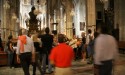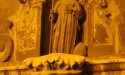 Al entrar en la iglesia de Sta. Eulalia nos narra la historia de la figura de Ramón Llull, y su conversión. El insigne personaje fue un «vividor», -según él- «trovador del amor humano», que se convirtió en «juglar del espíritu». Según la leyenda, perseguía a una bella dama, que al verse acosada entró en la iglesia, pensando que estaría protegida. Cúal fue su sorpresa, cuando Ramón Llull, a caballo, accedió al templo, intentando llevársela consigo. En ese momento, desde el altar, ella se abrió la blusa, y mostró sus pechos gangrenados. Ante tal descubrimiento, cayó en tierra, y a través de este signo que se le enviaba se apartó de la vida mundana, y se convirtió en un defensor de la fe cristiana.