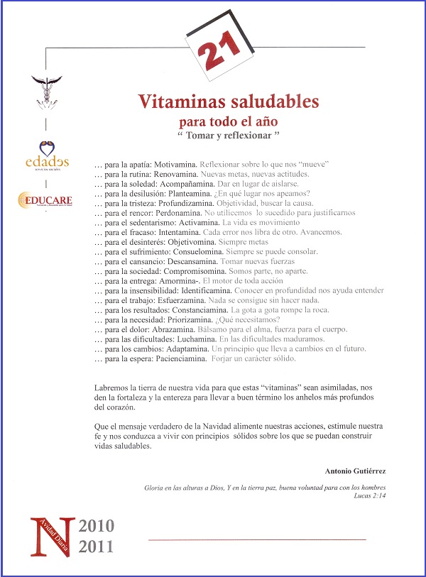 También recibimos una carta del psicólogo y amigo Antonio Gutiérrez Joya, que nos envía un mensaje a través del slogan “Vitaminas saludables” .