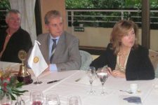 La Presidente de la AECC, Teresa Martorell, y su Gerente, Jaime Aguiló, nos acompañan hoy a la reunión. Tras la comida, ambos Presidentes, RCPJS y AECC, firman el convenio para la financiación por parte de nuestro club de un vehículo asistencial. Después de la firma, Teresa Martorell se dirige a los miembros del club a través de unas palabras de agradecimiento. Xisco y Mariano, teniendo en cuenta que el proyecto estrella, por el cual va a organizarse el Carnaval solidario de este año es precisamente la ayuda antes indicada para la AECC, se dirigen a Teresa Martorell con la finalidad de animarles a que acudan a la fiesta del carnaval y a que hagan extensivo este evento solidarios en su revista de divulgación.