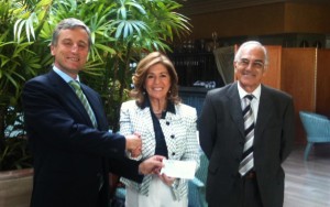 A las 16’20 se incorporan a la reunión Teresa Martorell, Presidenta de la Junta Provincial de Baleares de la AECC y Jaime Aguiló, Gerente de dicha Asociación. El club les hace entrega del segundo y último pago de la furgoneta asistencial que se ha adquirido gracias a lo recaudado en el 10º Carnaval rotario (Primer pago 7.050 euros+segundo pago 7.050 euros= 14.100 euros). El objetivo, por tanto, se ha cumplido, como también el objeto del convenio firmado entre RC Palma Junípero Serra y la Junta Provincial de Baleares de la AECC, el pasado 14 de diciembre de 2010.