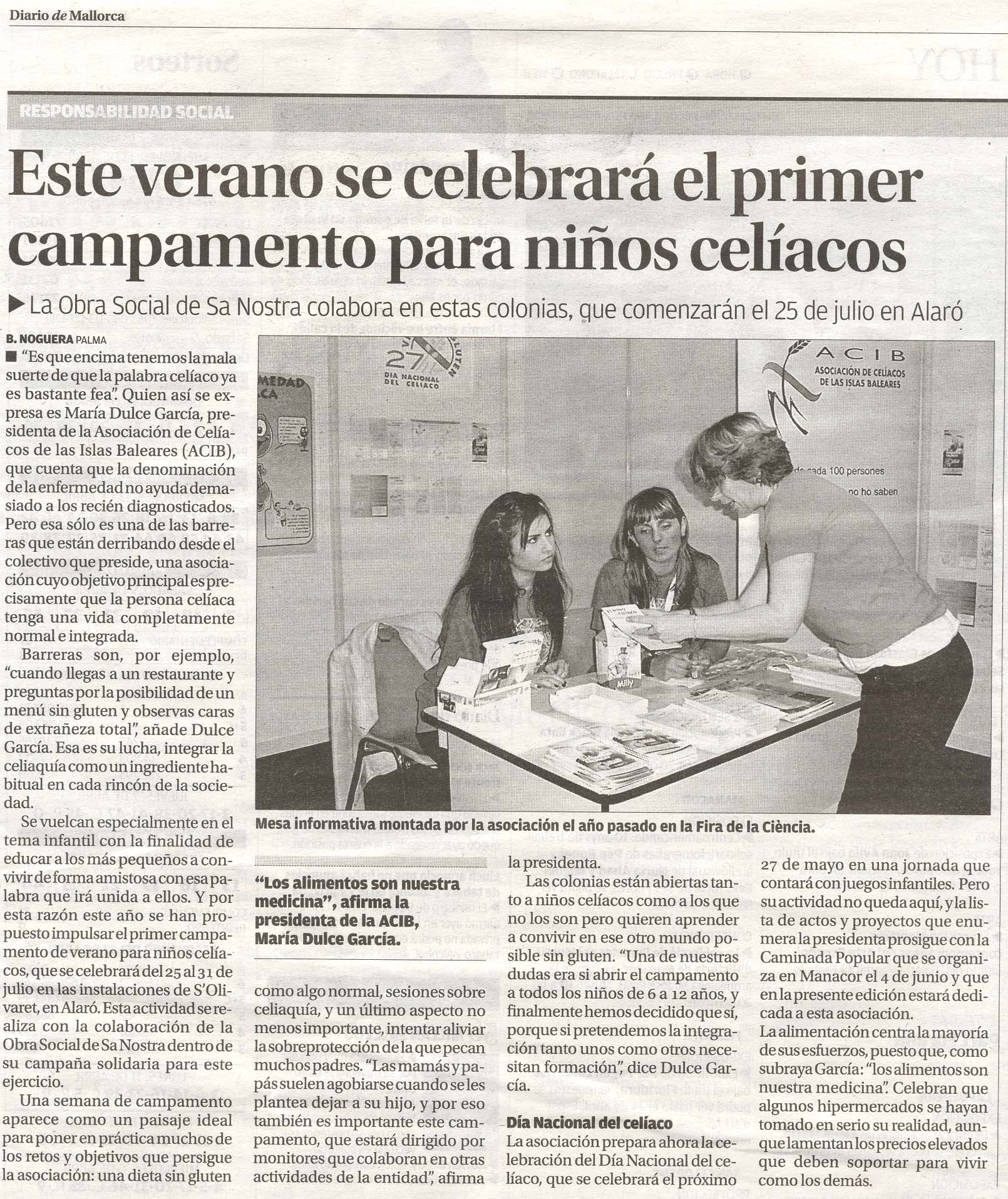 Noticias Campamento para niños celíacos 15 abril, 201117 mayo, 2021 José Ferrer Dolça en Diario de Mallorca del 14 de Abril. Related Images:
