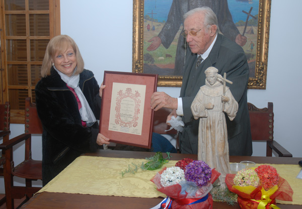 Antes de finalizar el acto el Presidente de la Asociación de Amigos de Junípero Serra, D. Tummy Bestard, entregó a la Rectora de la UIB el título de honor de la Asociación de Amigos del Padre Serra.