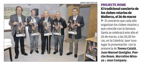 Desde 1987 la institución Projecte Home de Baleares, recibe aportaciones solidarias por parte de los clubes rotarios apoyando esta iniciativa, tan necesaria en nuestra sociedad, y por ello, debemos seguir con nuestro máximo esfuerzo e ilusión respaldándoles con esta ayuda.