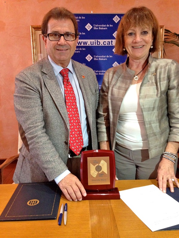 El Rector de la Universidad de las Islas Baleares, Dr. Llorenç Huguet y la Gobernadora del distrito 2203, Graciela Waen, en representación de los Clubes Rotarios de Baleares, firman el Programa Rotary Universitas.