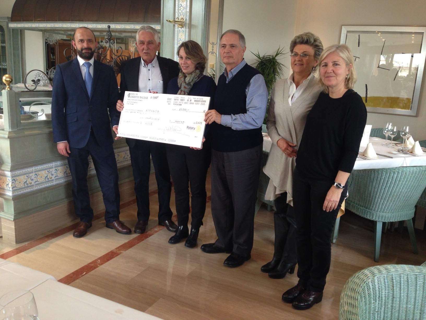 En la foto aparecen de izquierda a derecha: Juan Barceló, del Hotel Valparaíso, Jaume Coll, de Aspanob, Dolça García, José Lorenzo Mulet y María Ramón de R.C. Palma Ramón Llull y Marisa Barral.