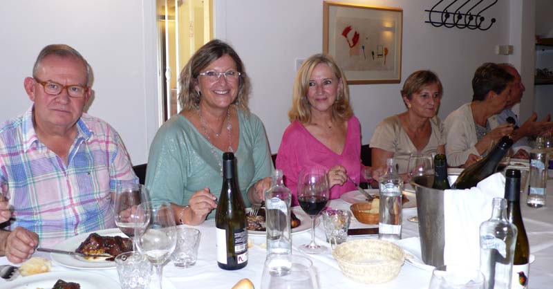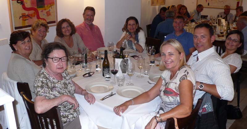 Compartimos mesa, mantel y muy buen rollo, socios del club, conyuges,  José Luis y Lina, y amigos del Padel 9-Once.