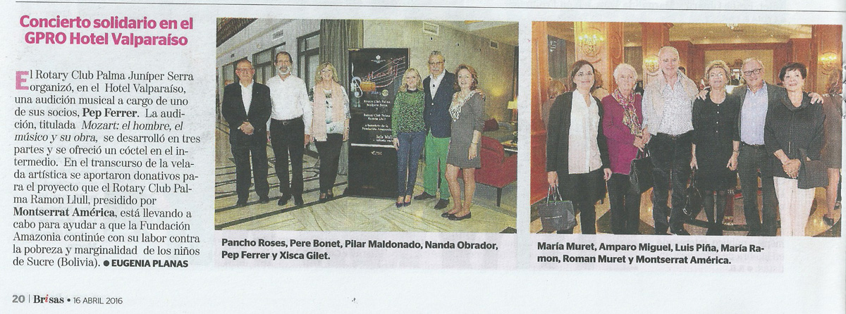 con Mozart , el apoyo con la recaudación al Club Ramón LLull en su proyecto para la Fundación Amazonia.