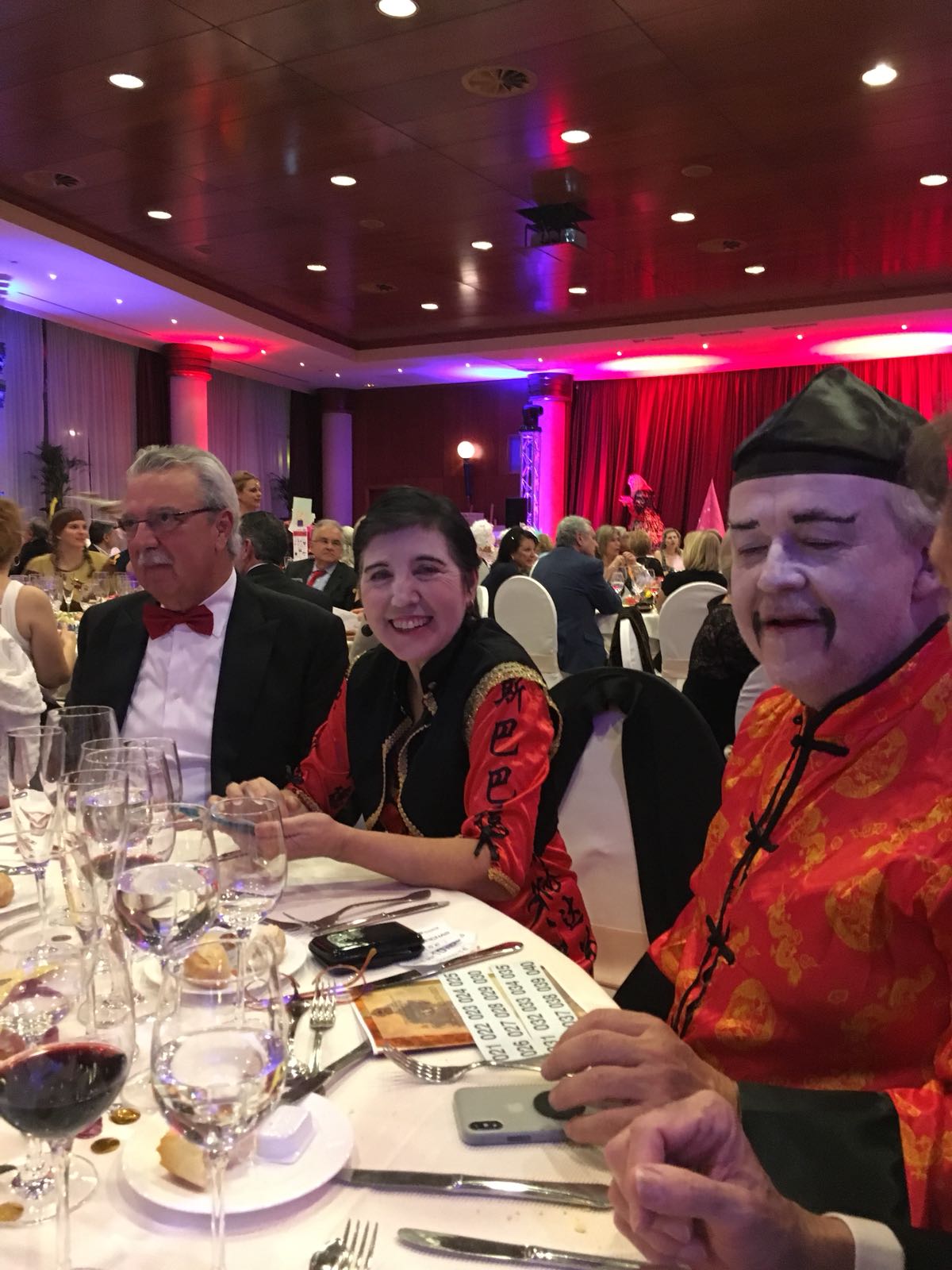 Llena la sala de celebración, previo cóctel, con puntualidad hispano-alemana (es decir, a la hora indicada de las 20,30h.), empezaron los desfiles de los diferentes invitados disfrazados, solos, en pareja y en comparsa.
