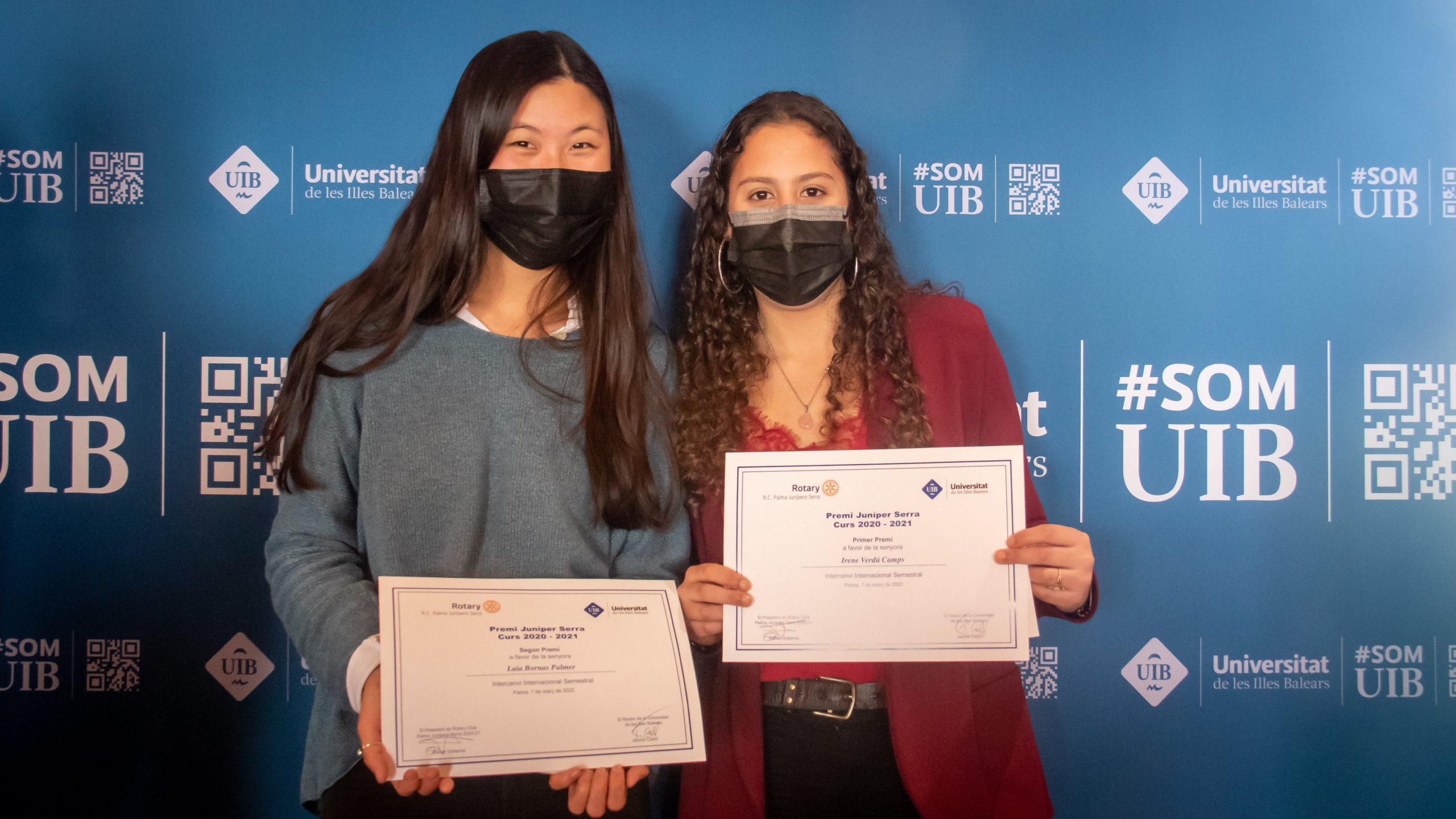Dos alumnas de la Universidad de las Illes Balears reciben el premio Junípero Serra (XI edición) otorgado por el Rotary club Palma Junípero Serra a los mejores resultados académicos de intercambio internacional durante el curso semestral 2020-21