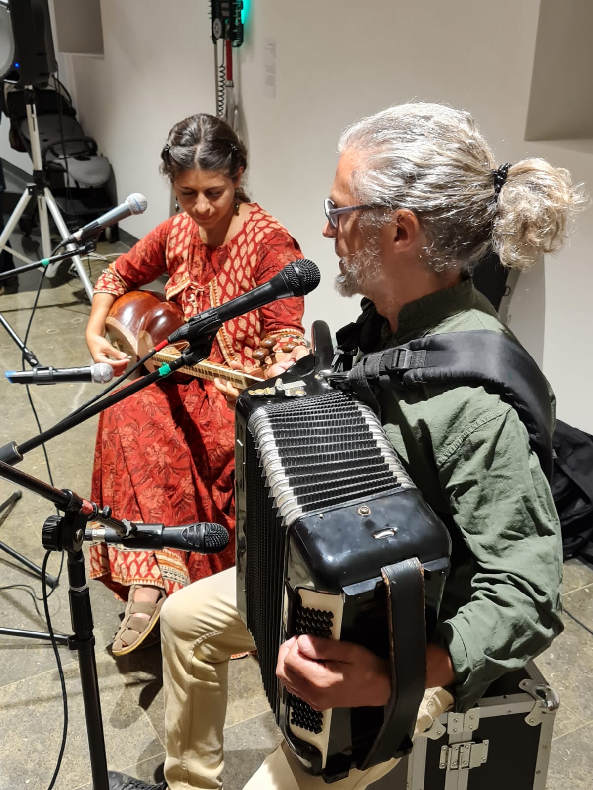Seguidamente se hizo la lectura del texto curatorial y se visitó la exposición IMAGINAR EL MAR. También se escuchó un concierto a cargo del grupo musical Qânât.